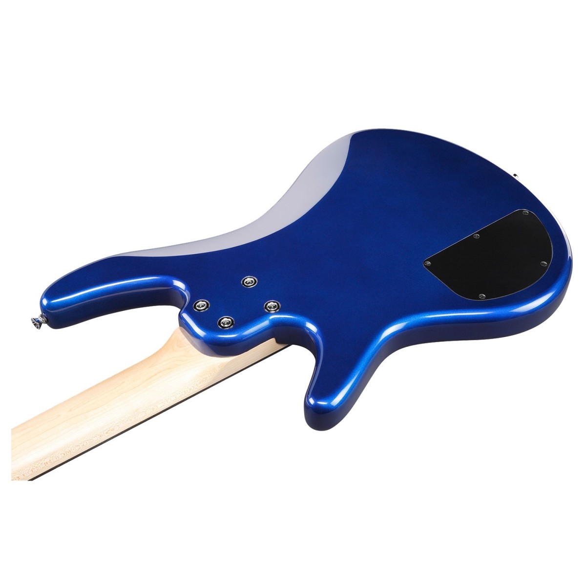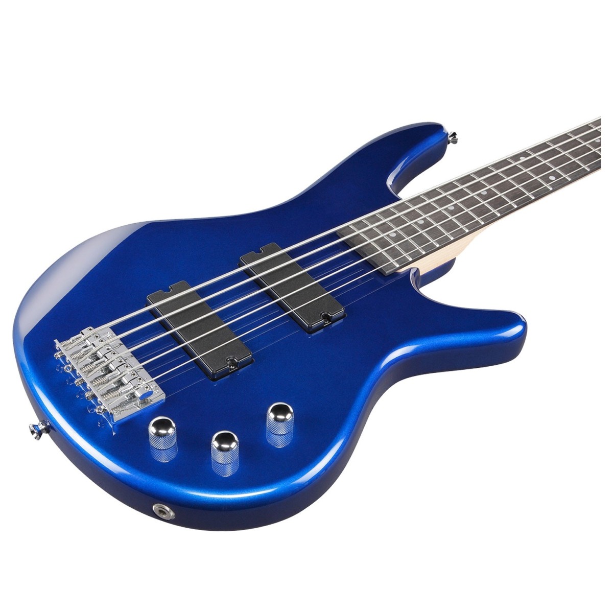 The Ibanez GSR Series, 5 String Electric Bass is a sleek and versatile instrument designed for bold low-end power. With its eye-catching Jewel Blue finish, fast-playing maple neck, and lightweight okoume body, this bass delivers comfort and performance in one streamlined package. The Purpleheart fretboard adds a touch of elegance while enhancing tonal clarity across the extended range.